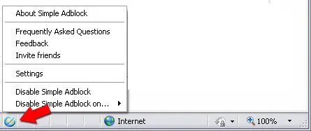 - Notice the new Simple Adblock Icon in Internet Explorer. This can be used to enable/disable and further manage the program.